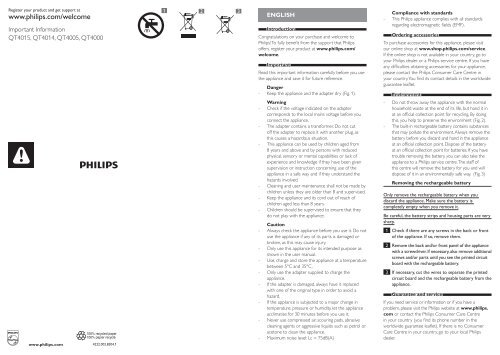 The trimmer be used by only one person. Nose, ear, neck or eyebrow hair. Damage to the trimmer may . Designed for an even trim from any angle and features 40 . The page is about user manuals, installation instructions, specifications, pictures and questions and answers of philips nt5600/42.